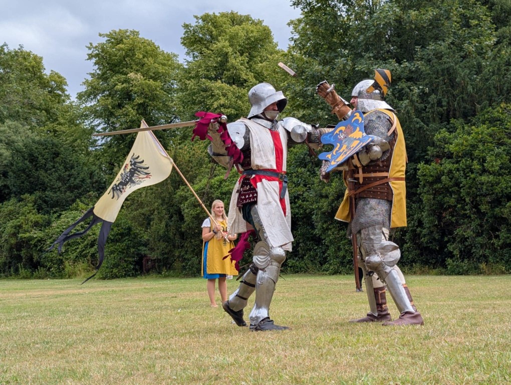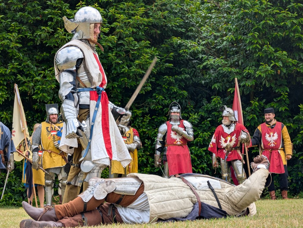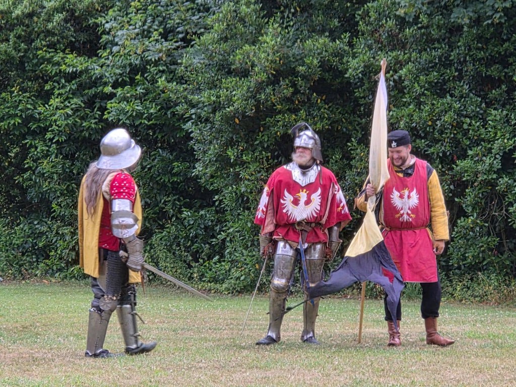 Whilst dramatic thunder and lightning flashes added to the atmosphere of the final Knights Tournament, the deluge at 4pm really put a dampener on everything, especially the canvas.