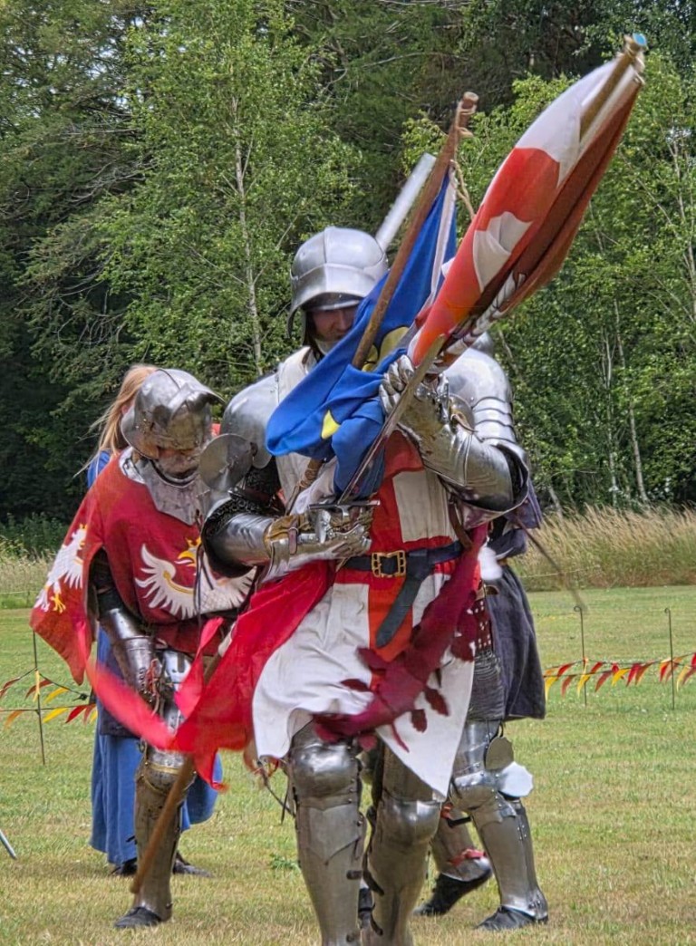 Whilst dramatic thunder and lightning flashes added to the atmosphere of the final Knights Tournament, the deluge at 4pm really put a dampener on everything, especially the canvas.